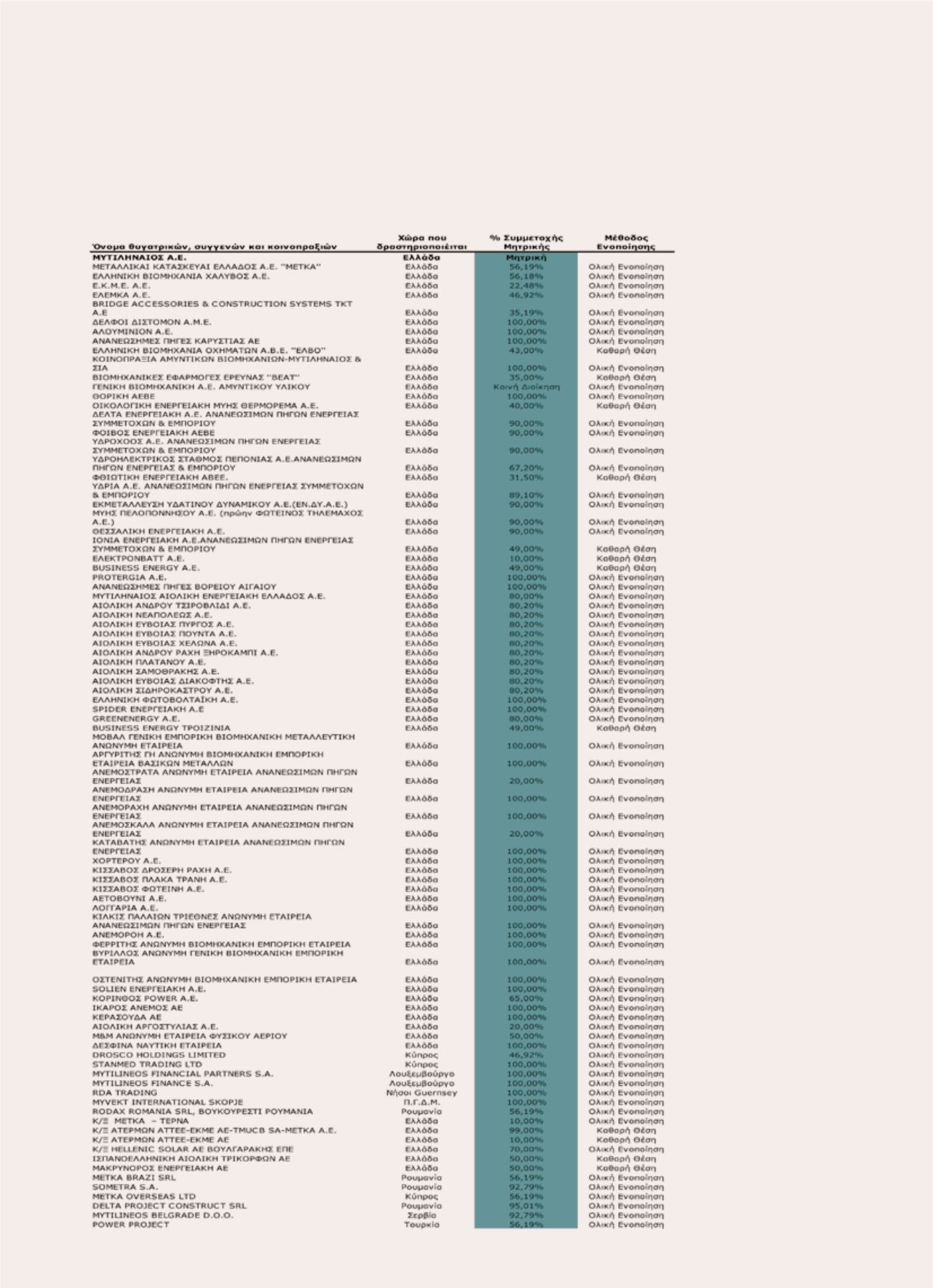 Οι εταιρείες του Ομίλου οι οποίες περιλαμβάνονται στις ενοποιημένες οικονομικές καταστάσεις και η μέθοδος