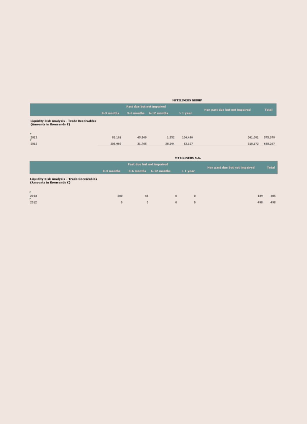 The tables below summarize the maturity profile of the Group’s financial assets as at 31.12.2013 and 31.12.2012
